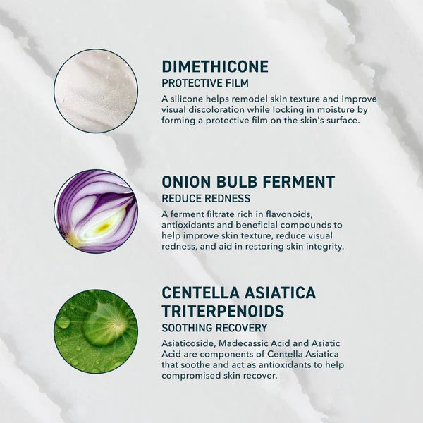 Asiaticoside, Madecassic Acid and Asiatic Acid are components of Centella Asiatica that soothe and act as antioxidants to help compromised skin recover